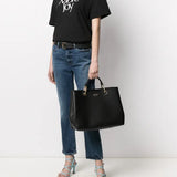 black/gold gold-tone logo lettering gold-tone hardware main compartment magnetic fastening two top handles detachable logo-print shoulder strap