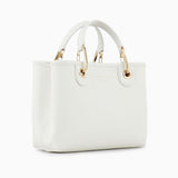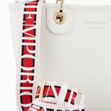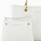 Deer-print small shopper bag with magnetic clasp and silk-screen logo. The item is embellished with removable gold-tone carabiner clips and tags with embossed logo lettering that match the bag. Featuring a matching inner zip pouch and detachable logo shoulder strap. This item belongs to the MyEA line, the selection of iconic and exclusive Emporio Armani bags that are most representative of the label. Choose the piece and complete it with accessories from the line that suits your style. The bag is also part of the Essentials selection, making it a statement of enduring style: both elegant and practical, it works in numerous combinations on a wide array of occasions.