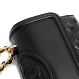 Signature quilting and a trapunto logo style this supple lambskin bag that can be worn crossbody or on the shoulder.