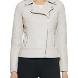 Tailored from textured faux leather, this chic jacket is adorned with a goldtone zip and studded detail.