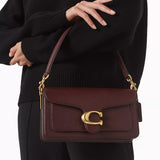 The Coach Tabby 26 is crafted from high-quality polished pebble leather for a luxurious feel. It features a structured silhouette with a modern, elegant design.