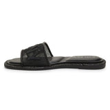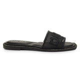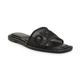The Badin flat sandals from DKNY feature an embossed logo detail and rhinestone-embellishments along the sole for subtle bling.