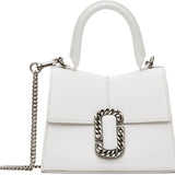 Presented in a white colourway, this bag by Marc Jacobs is punctuated with the signature logo plaque in a chain-link iteration. It benefits from a foldover top and a detachable chain-link shoulder strap so that it can be used as a tote or crossbody bag.