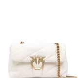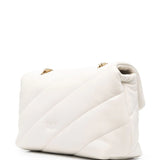 cloud white calf leather matelassé detailing gold-tone hardware gold-tone logo plaque leather and chain-link shoulder strap foldover top magnetic fastening partitioned compartment internal slip pocket internal zip-fastening pocket