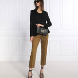 The Love Bag Click is crafted from soft, silky leather. The concealed magnetic closure features the iconic Love Birds Diamond Cut metal buckle with engraving. The microfiber-lined interior features a zipped divider pocket and a flat leather pocket. The 110 cm shoulder strap combines a metal chain with round links and a practical leather shoulder pad.