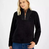 Tommy Hilfiger Women's Sherpa Mock Neck Long-Sleeve Sweatshirt in black size medium