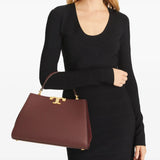 brown leather logo buckle fastening silver-tone hardware logo buckle fastening single flat top handle adjustable detachable shoulder strap main compartment