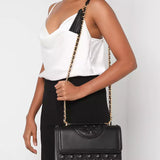 - Convertible chain and leather interwoven shoulder strap with 22.2" (56.5cm) drop: leather shoulder guard for comfort