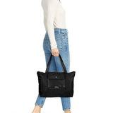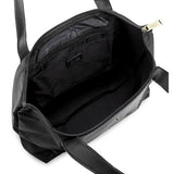 A stylish tote featuring silvertone hardware and inside pockets for added convenience.