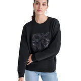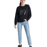 DKNY JEANS Women's Sequin Applique Satin Stitch Stack Logo Cotton Sweatshirt In Black size M