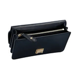 Leather bag featuring gold-toned Love Birds buckle with crystals on the front flap, magnetic closure, stud inserts, chain shoulder strap and inner zipped pocket